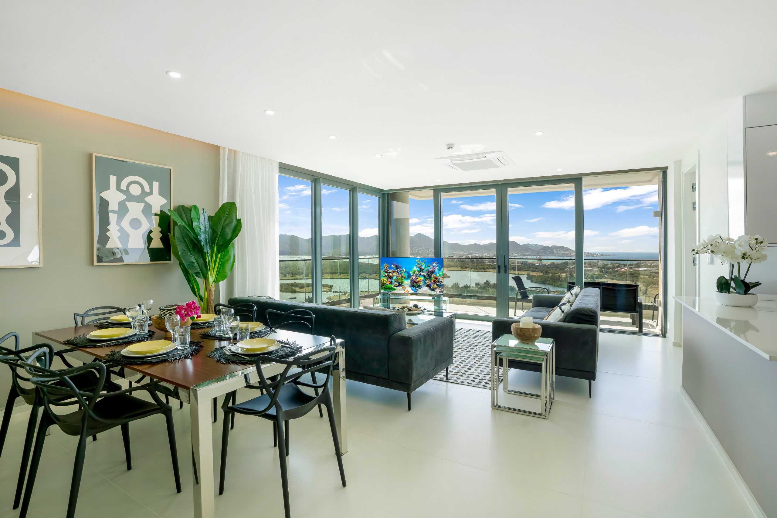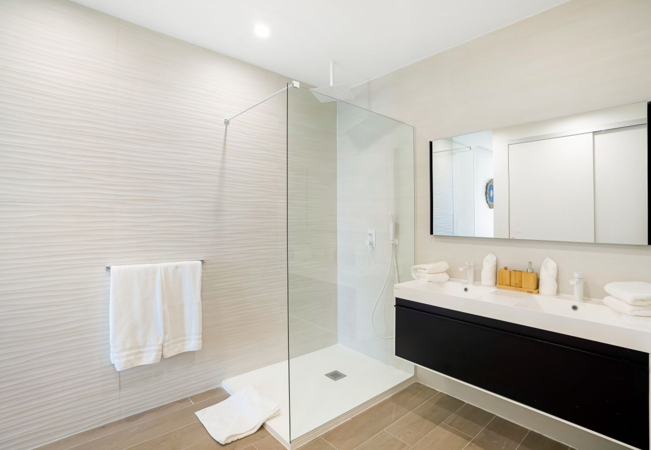 Les trois chambres sont soigneusement décorées, avec placards intégrés, coffres-forts privés et vues directes sur la mer. La suite principale bénéficie d’un accès privé au balcon et d’une literie haut de gamme pour un confort absolu.