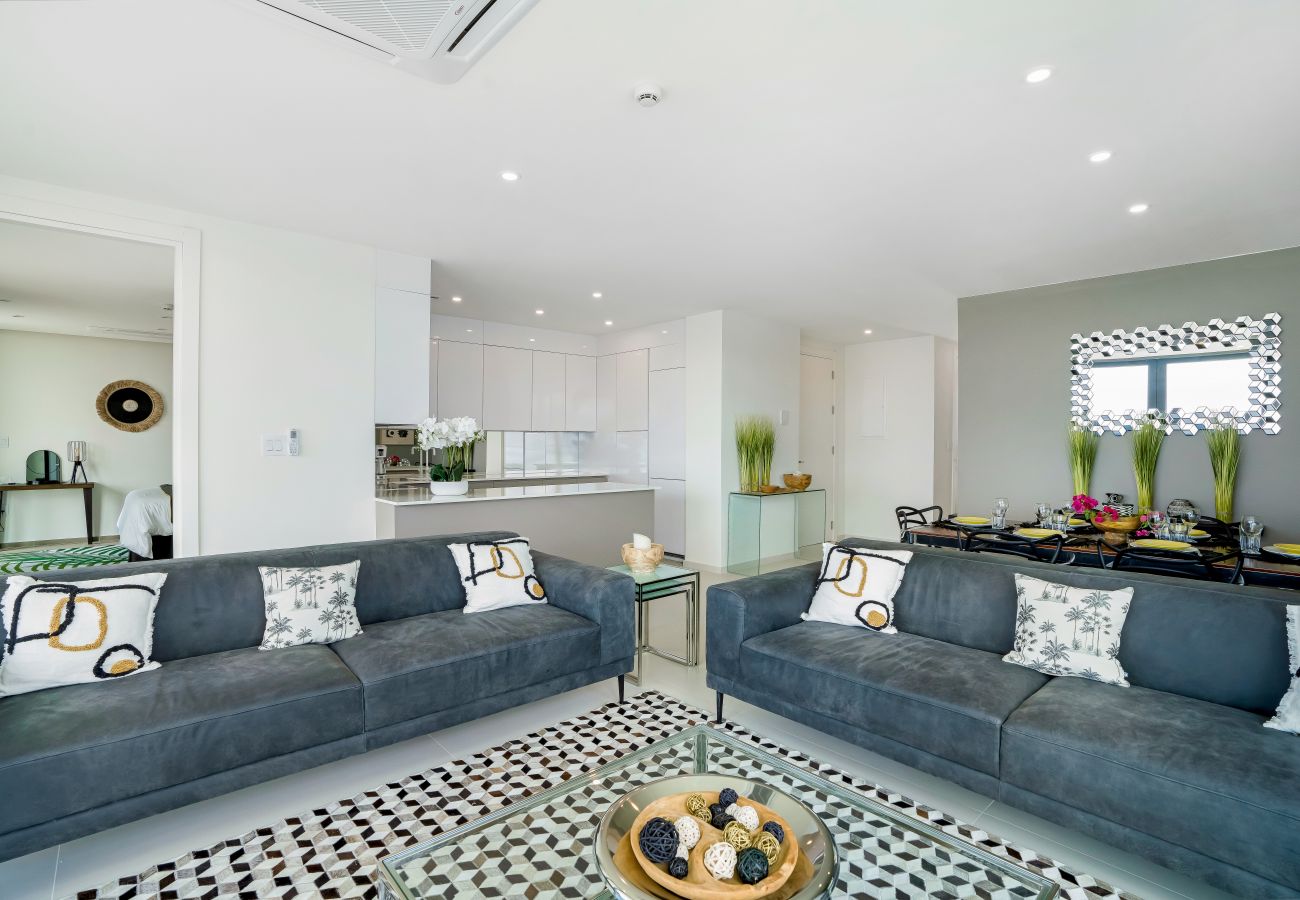 Ce magnifique sub-penthouse occupe la moitié du 19e étage, offrant une intimité totale et des vues dégagées sur la plage, le parcours de golf et les îles voisines.