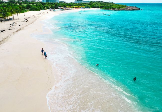 Mullet Bay est l’une des plages les plus prisées de l’île : protégée par un récif, elle est idéale pour la baignade et le snorkeling. En hiver, elle peut offrir d’excellentes conditions pour le surf, tandis que le reste de l’année, la mer y est paisible et calme.