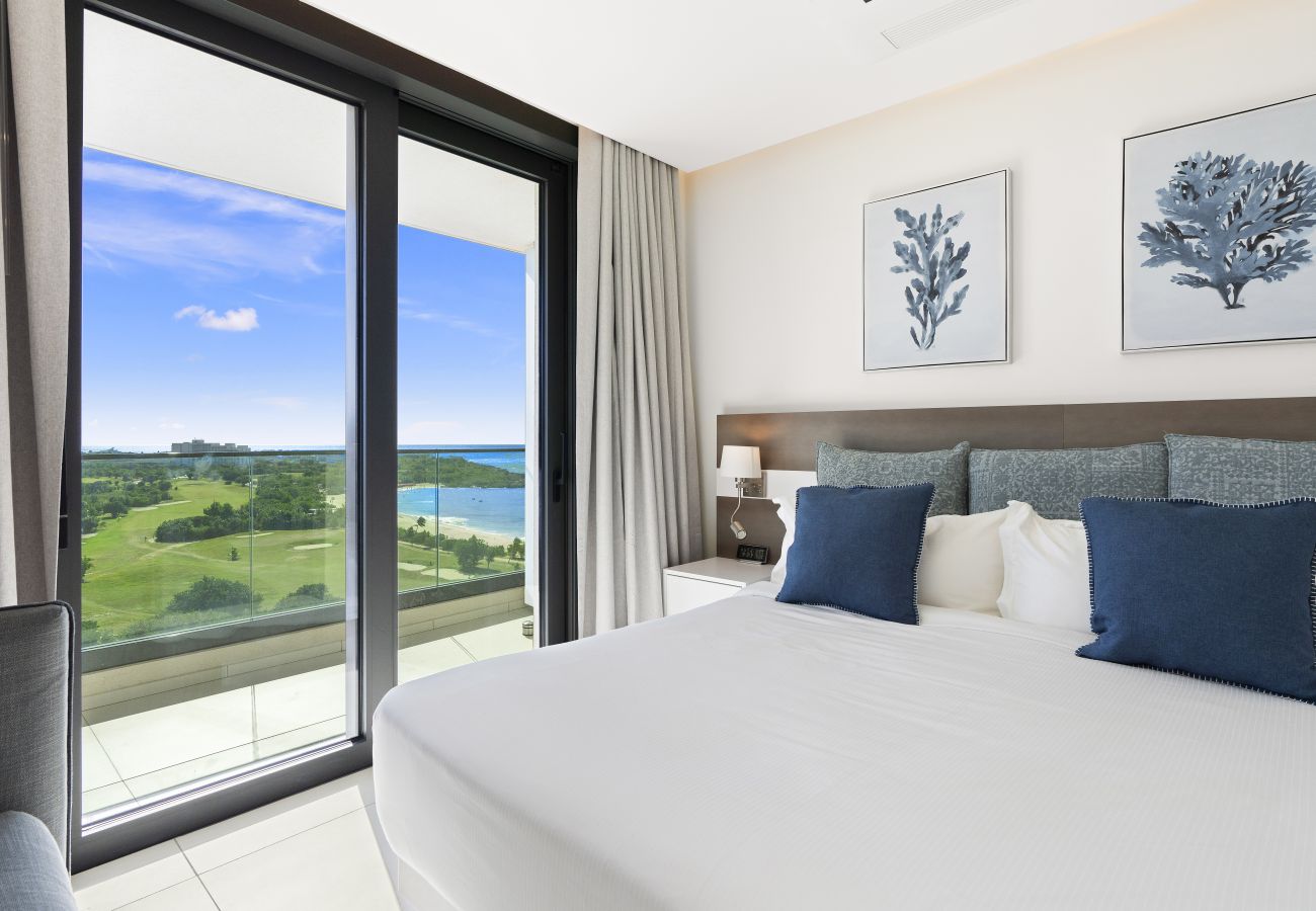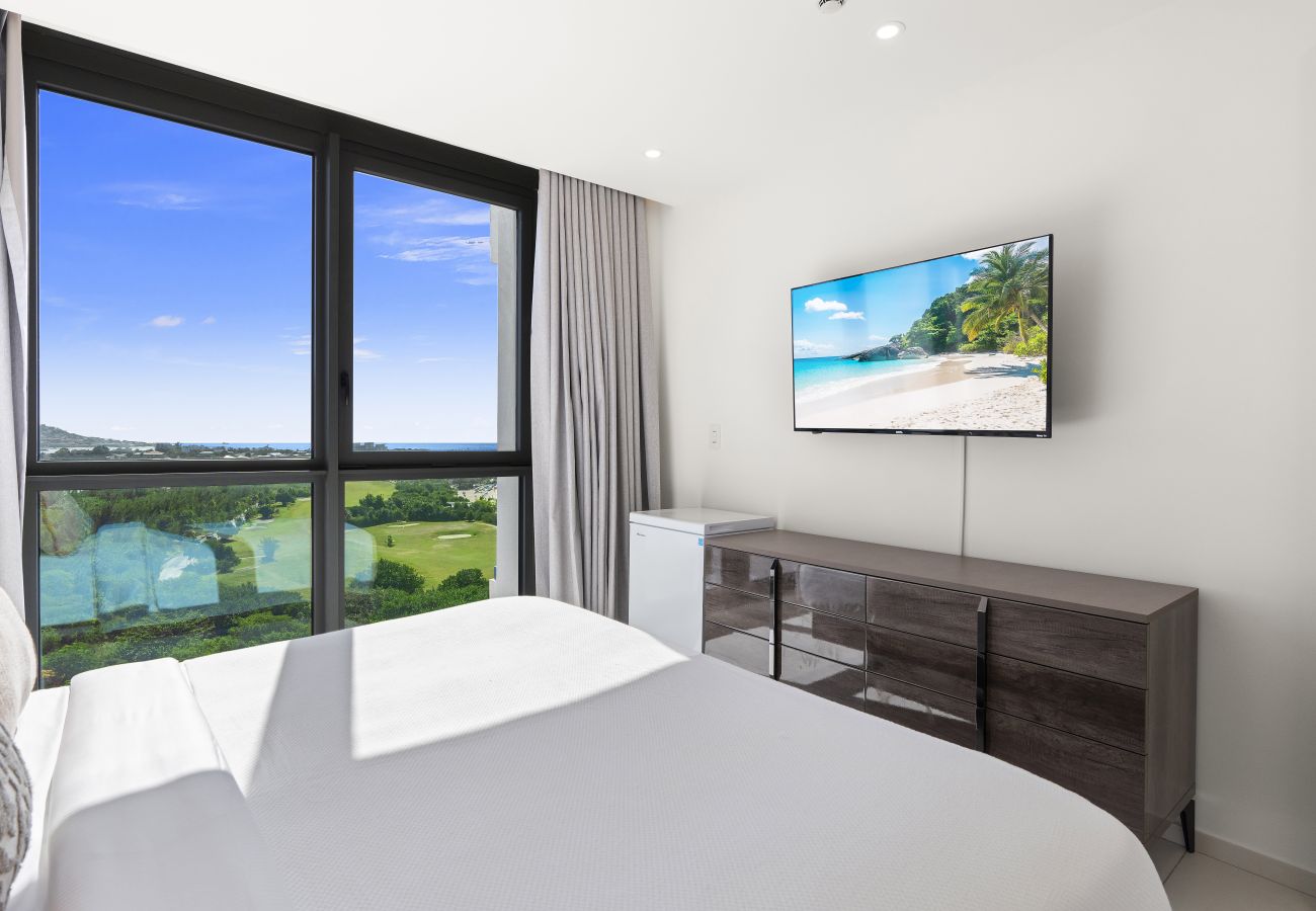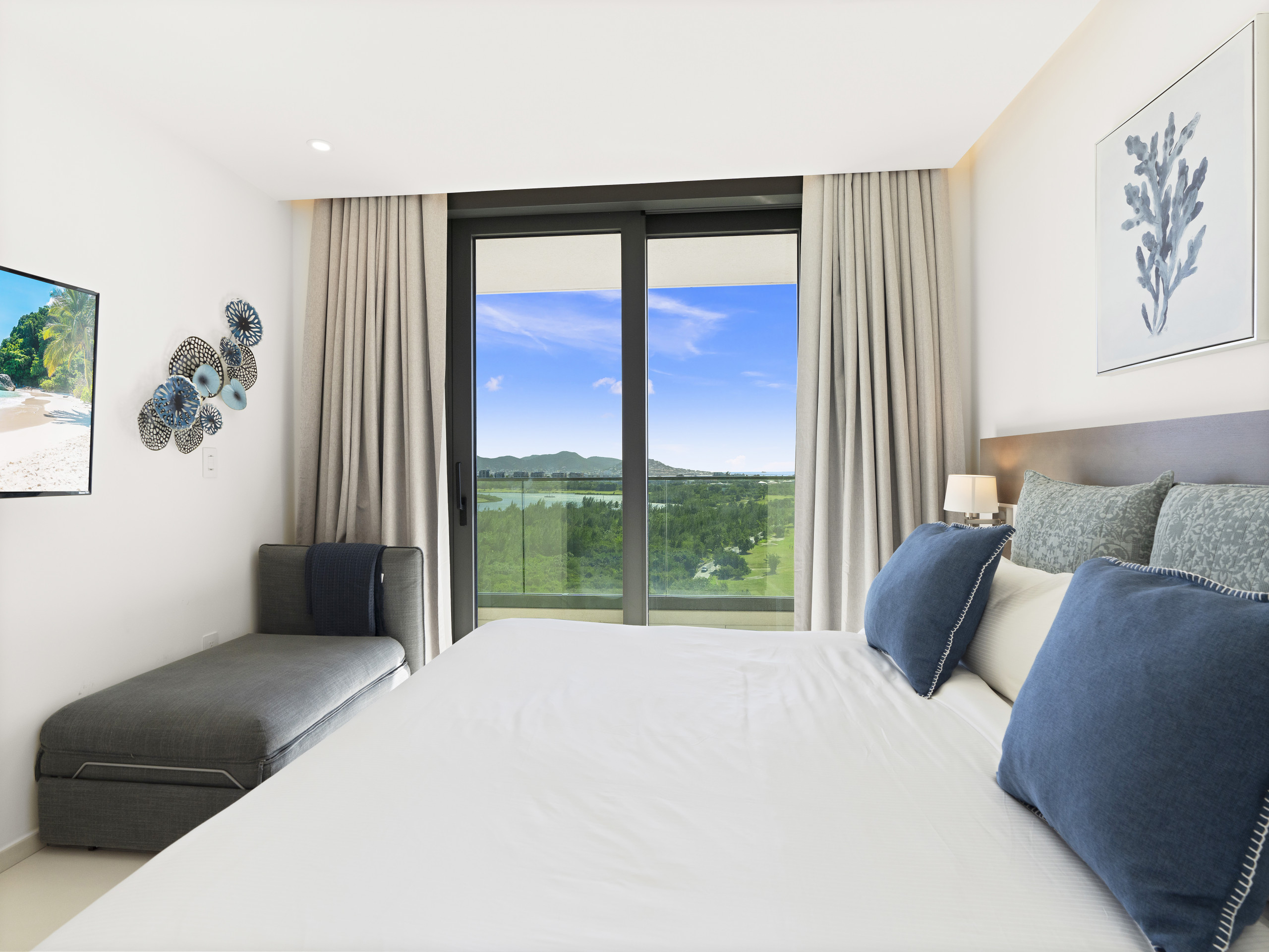 Appartement 2 chambres situé au 18ème étage. Très spacieux et confortable, offrant jusqu'à 116,7 mètres carrés d'espace de vie exquis. L'île rêve de se réveiller sur la magnifique plage de sable blanc de Mullet Bay et ses eaux turquoises à couper le souffle. Vous pourrez également profiter pleinement de la vue spectaculaire et panoramique sur les îles voisines de Saint-Kitts-et-Nevis et de Saba directement depuis votre balcon.