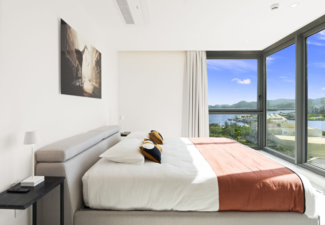 Situé au 19e étage, il s'agit du deuxième plus haut penthouse 3 chambres de l’immeuble. Il bénéficie de plafonds de 3,35 m et d’une vue panoramique spectaculaire sur Mullet Bay, l’océan et les collines verdoyantes des environs.