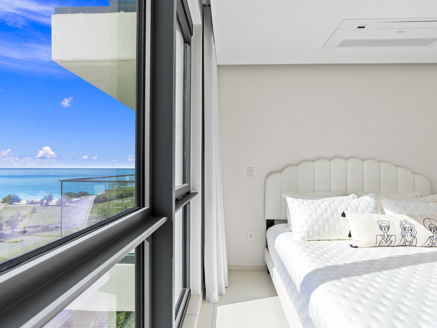 La chambre spacieuse est un sanctuaire de confort et de tranquillité. Le lit, orné de draps luxueux et d'une gamme d'oreillers moelleux, garantit une nuit de sommeil réparatrice. Réveillez-vous rafraîchi et rajeuni, prêt à commencer votre journée, tout en savourant la vue panoramique sur l'océan qui vous accueille depuis la fenêtre de la chambre. Ce cadre paisible crée l’ambiance parfaite pour une routine matinale agréable.