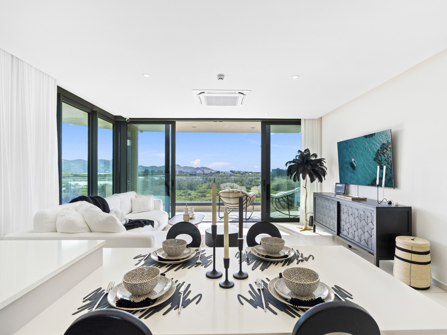 Dès votre entrée dans l’appartement, vous serez immédiatement séduit par l’harmonie parfaite entre l’élégance moderne et le charme côtier. L’espace de vie ouvert dispose d’un mobilier raffiné et d’une décoration élégante, créant une ambiance sophistiquée qui complète à merveille les vues à couper le souffle juste à l’extérieur. La lumière du soleil traverse les grandes baies vitrées, inondant la pièce d’une douce chaleur et mettant en valeur la vue spectaculaire sur la plage qui s’étend devant vous.