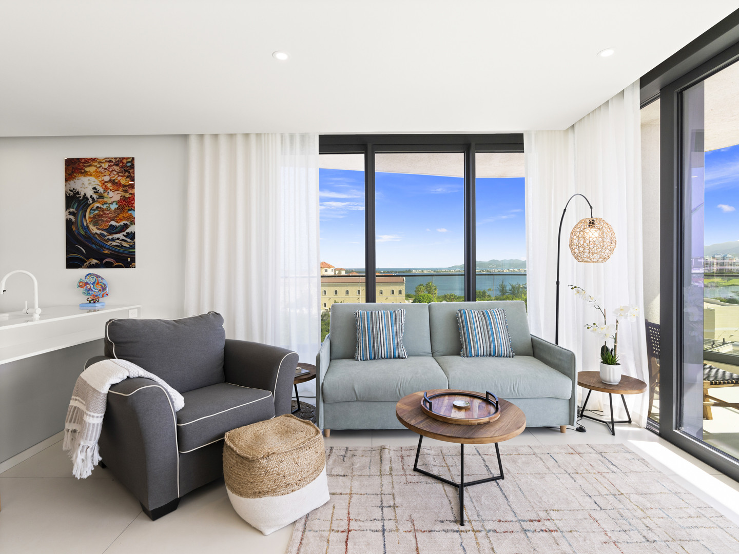 Ce condo d'appartement d'une chambre a été inspiré par des intérieurs conçus par des professionnels, des tissus de créateurs et des meubles confortables pour que vous viviez une expérience exceptionnelle. Les intérieurs du salon décontracté et de la salle à manger ont été soigneusement sélectionnés pour offrir une merveilleuse sophistication ainsi qu'une sensation de fraîcheur et de détente.
