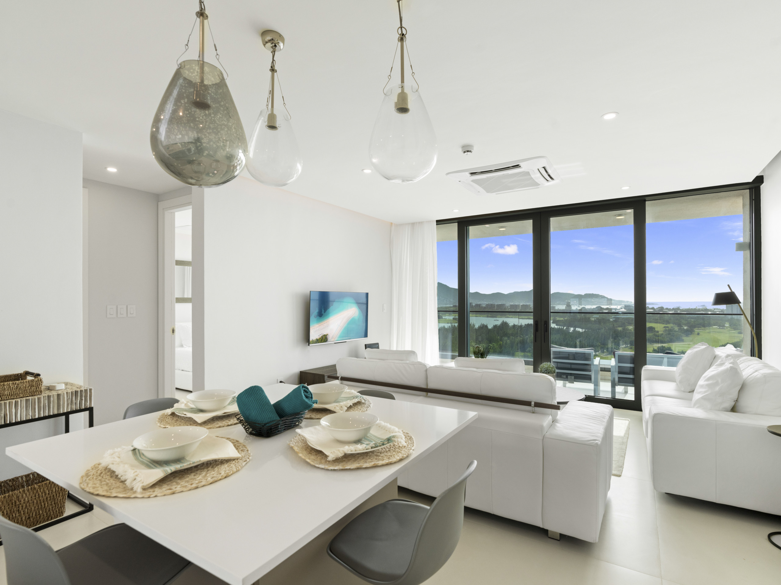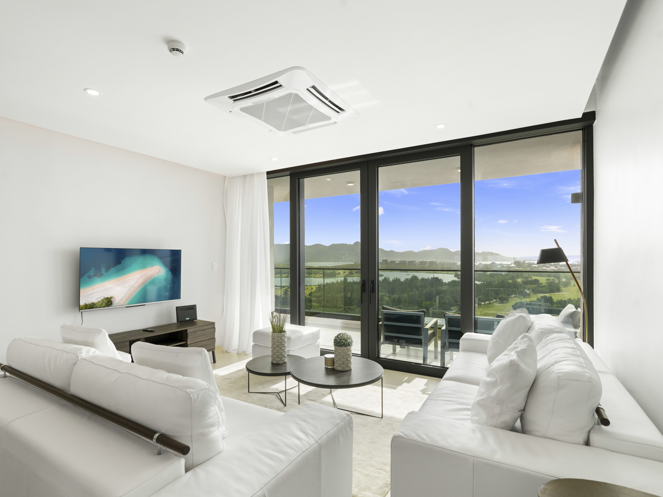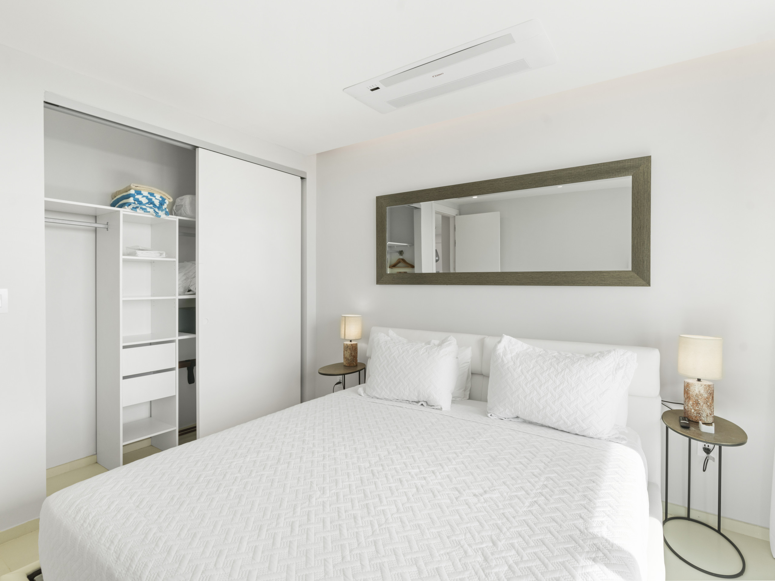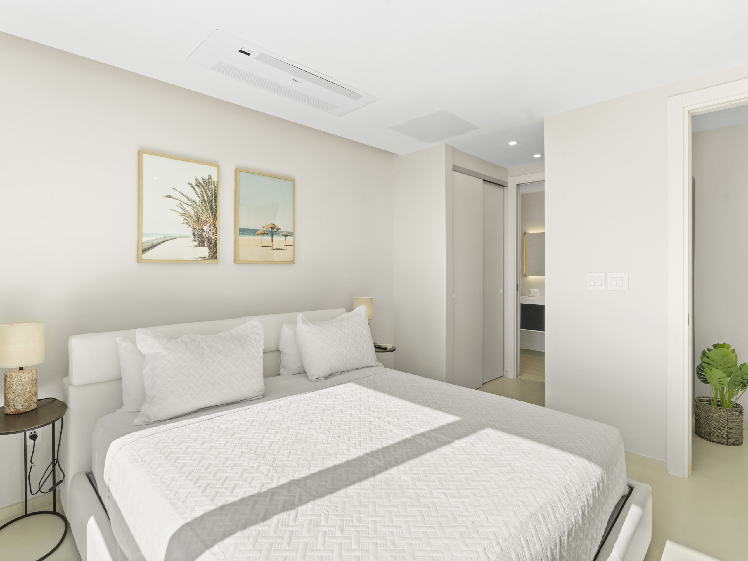The accommodation is equipped with the following items: elevator, air conditioning throughout the house, communal swimming pool, communal heated swimming pool, open-air parking in the same building, TV.