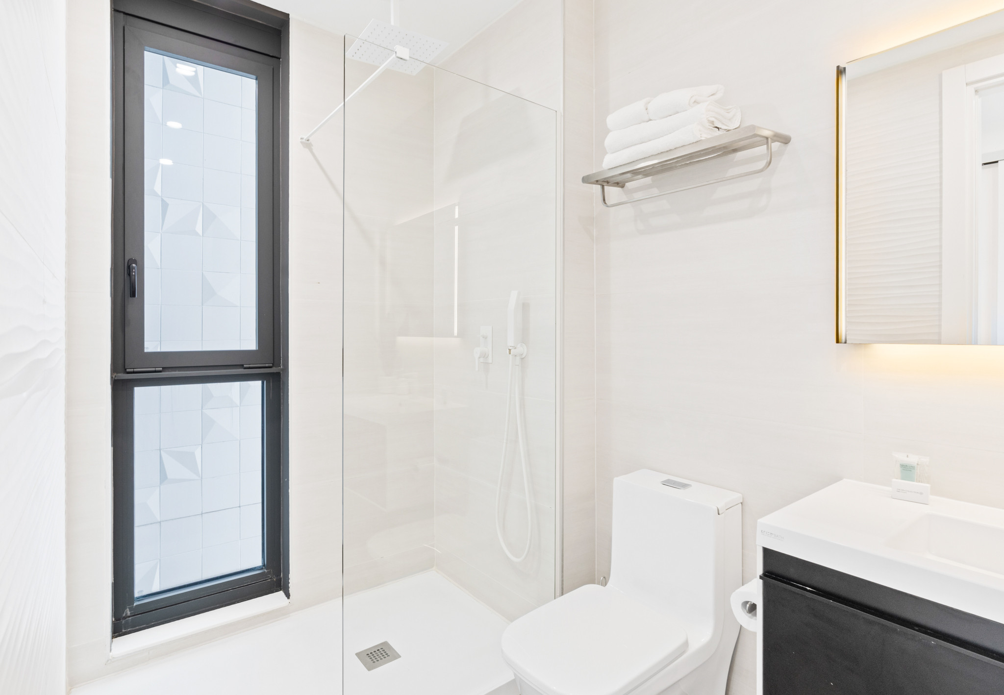 The apartment also boasts two well-appointed en-suite bathrooms, exuding refinement, and elegance. Indulge in the spacious walk-in rainfall showers, surrounded by modern fixtures and luxurious finishes. Each bathroom provides a sanctuary of relaxation, complete with premium amenities and plush towels.