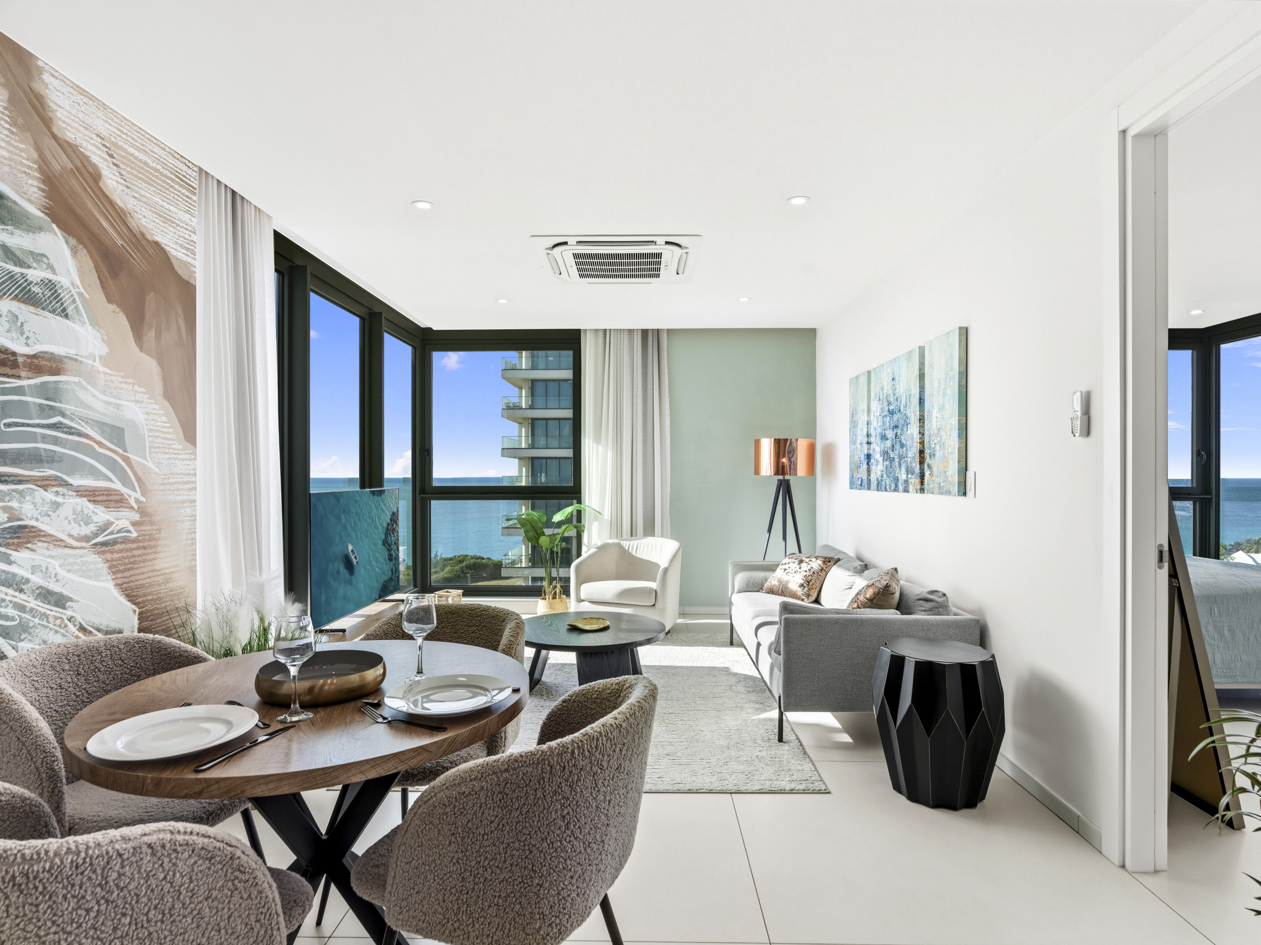 The living area has been thoughtfully designed to provide both relaxation and a front-row seat to the captivating coastal panorama. Sink into the plush seating, and let yourself be mesmerized by the azure waters and golden sands. This is the perfect spot to unwind, read a book, or simply appreciate the serenity of the beach view.