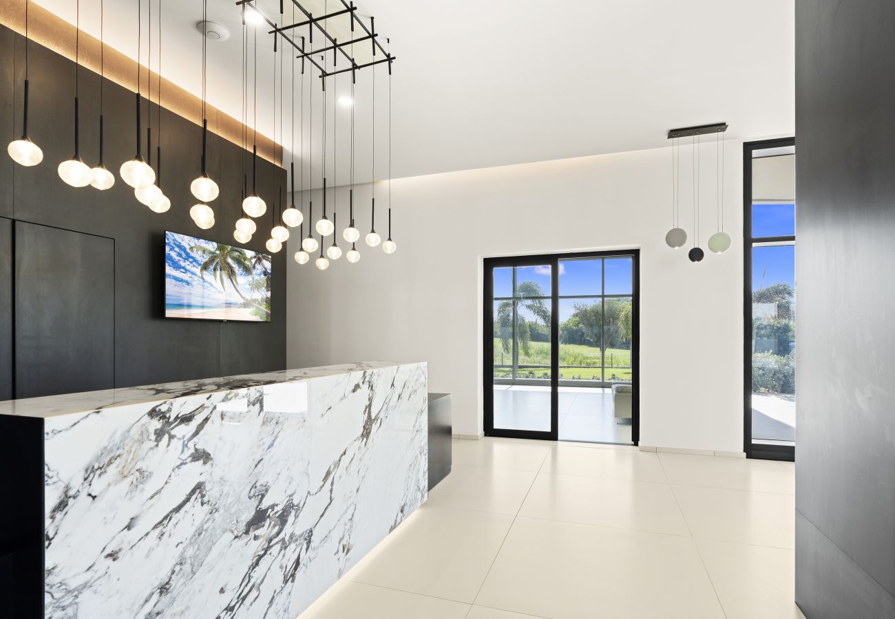 As you enter the apartment, you'll be immediately captivated by the stunning panoramic views of the beach through the floor-to-ceiling windows. This corner unit allows for an abundance of natural light to flood the space, creating a bright and airy ambiance that perfectly complements the coastal surroundings. The interior has been thoughtfully designed, combining modern elegance with a touch of warmth and charm.